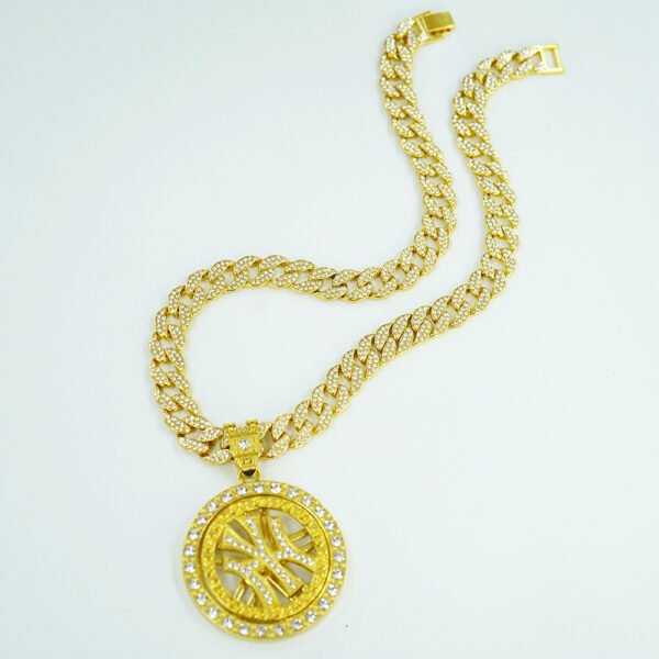 Rotatable Rhinestone New Yorks Pendant Cuban Link Necklace