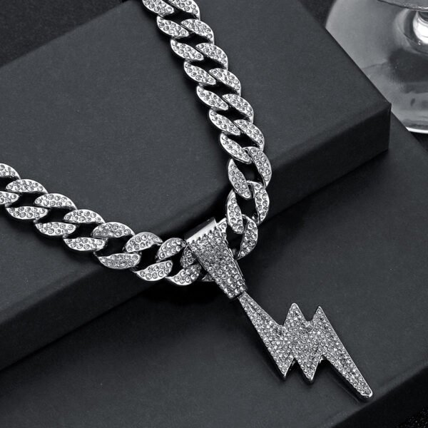 Hip-Hop Iced-Out Lightning Bolt Pendant Cuban Link Necklace