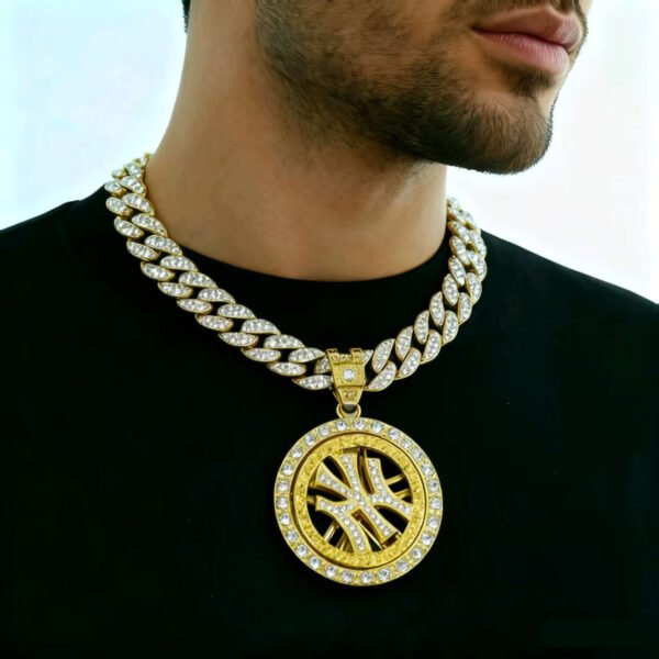 Show your city pride with this Rotatable Rhinestone New Yorks Pendant Cuban Link Necklace, designed for men who love bold hip-hop fashion and standout urban streetwear style.
