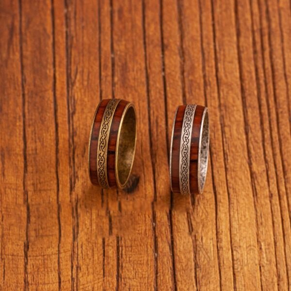 A Maillard-style wood barrel ring inspired by Mont Saint-Michel, blending Celtic knot symbolism with warm, vintage craftsmanship.