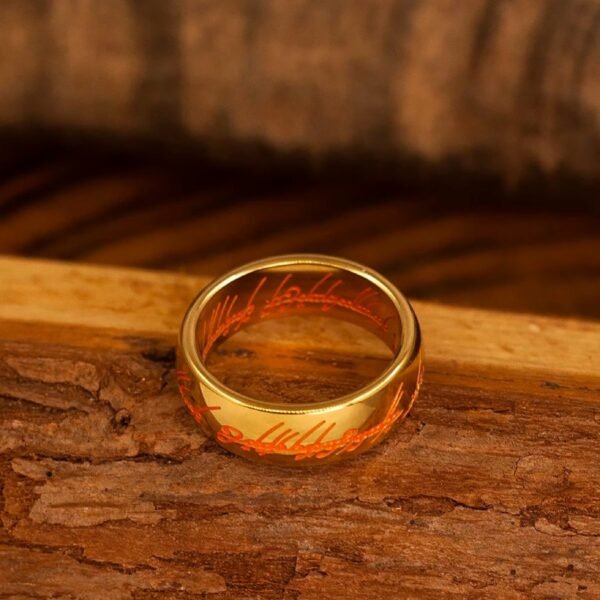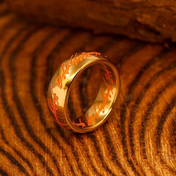 Classic steel ring with gold color plating, featuring an iconic Lord of the Rings–inspired design that symbolizes eternal strength and loyalty.