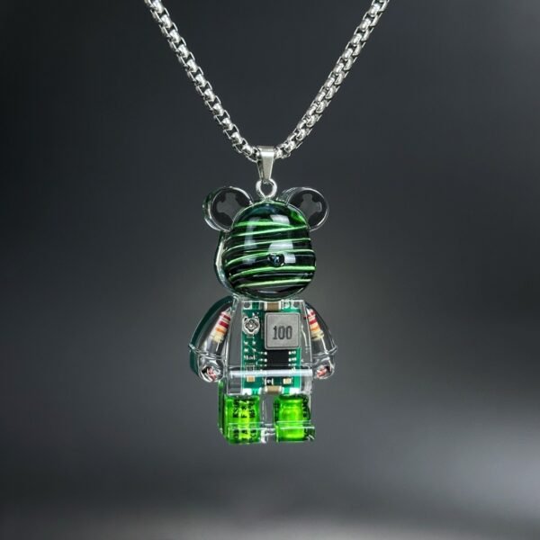 Hip-Hop Fashion Upcycled PCBA Resin Robot Bear Pendant Necklace