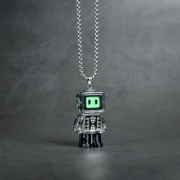 A punk-inspired luminous robot pendant crafted from upcycled PCBA, blending tech, sustainability, and bold individuality.